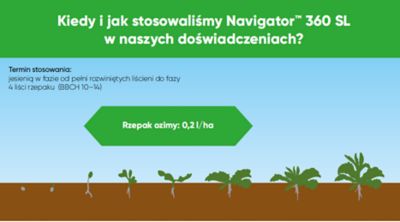 Najlepsze, sprawdzone w naszych doświadczeniach rozwiązanie to: Navigator™ 360 SL 0,2 l/ha + produkt zawierający metazachlor 500 SC, np. Metazanex** 500 SC 1,25–1,5 l/ha.